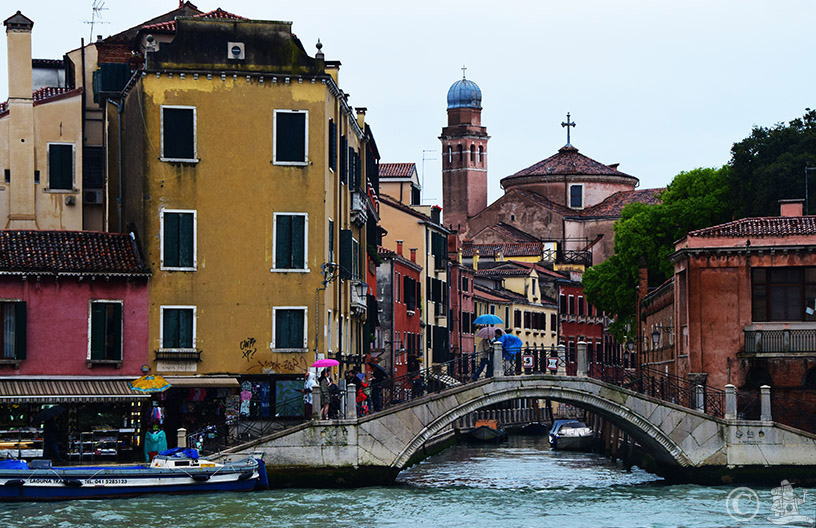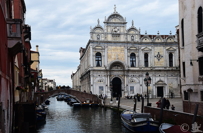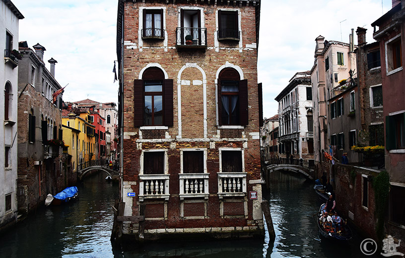 Aztán találtam egy újabb ferde tornyot, méghozzá a San Giorgio dei Grici (ejtsd: szan dzsórdzso dej grícsi) harangtornyát. Hát, már annyira megdőlt, hogy szerintem nagyon kacérkodott a gondolattal, hogy csobbanjon egyet a csatornában. A templomot az Ottomán birodalomból migráló görög ortodox menekültek építették.