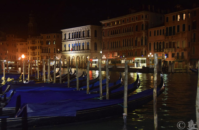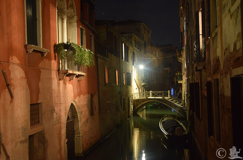 Már teljes sötétségben kukkantottam meg a San Polo és a Santa Croce (ejtsd: krócse) körzeteket. Jobban élveztem, mint nappal. A szépen, de sejtelmesen kivilágított sikátorok, a furcsa árnyékok és a félhomályban bujkáló csatornák elvonták a figyelmemet. A San Rocco és a San Barnaba tér, vagy a Grand Canal éjjel talán még érdekesebb és hangulatosabb. Hovatovább nyugisabb.