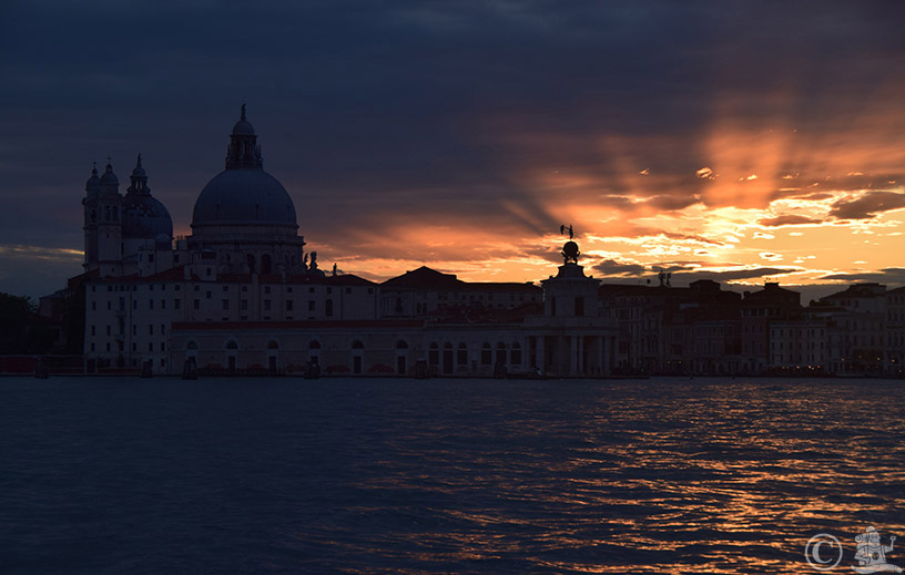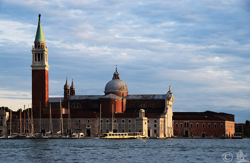 Már messziről feltűnt a San Giorgio Maggiore sziget templomának fehér márvány homlokzata, amely szintén a naplemente korai szakaszának fényében lubickolt. Áthajóztam, de ekkor már későre járt, ezért nem is találtam nyitva a bazilikát.