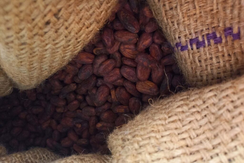 Szóval a földön összehalmozott kakaókat egyesével meglékelik anélkül, hogy belevágnának a babokba és csoportosítják őket felhasználhatóságuk szerint. Majd a jók és a rosszak külön zsákokba kerülnek. A jó kakaók lila babokat rejtegetnek fehér “köntösben”.