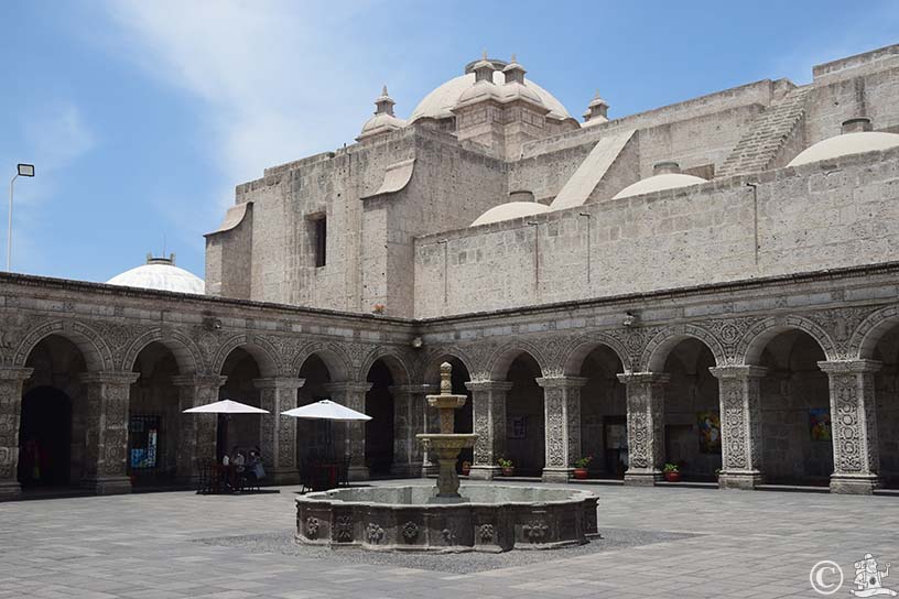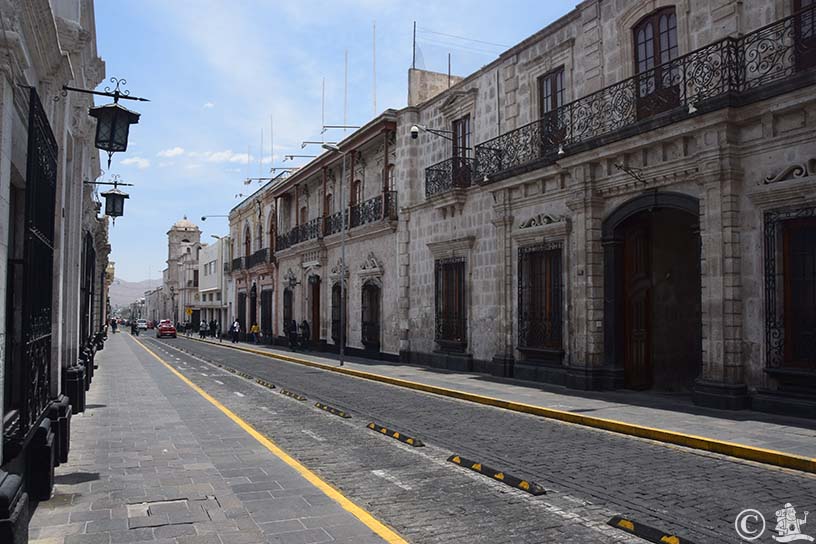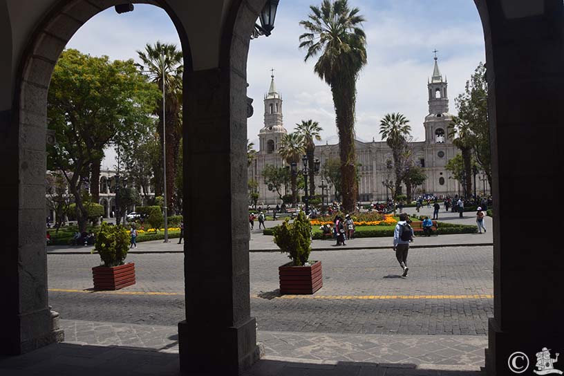 A kertes, pálmafás, szökőkutas főteret körülvevő boltíves árkádok és a katedrális nem kevésbé. Csupán átutazás céljából érkeztem Arequipába, de a belváros örökségei lekötöttek. Sőt, megleptek.