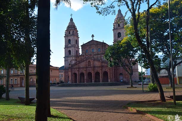 Ugyanitt meredezik az a háromhajós katedrális, mely az eredeti jezsuita templom replikája. Két toronnyal és hat haranggal rendelkezik, homlokzatán hét szent szobra kapott helyet. Felmásztam hozzájuk nyolcadiknak. A városban áll egy szoboregyüttes, mely a híres és szentként tisztelt guaraní vezér, Sepé Tiaraju (ejtsd: szépé csiárázsu) előtt tiszteleg.