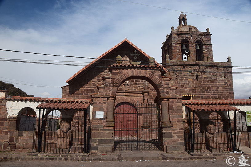 Tiahuanacóban nemcsak romok vannak, hanem ép házak, egy tágas, zárt, szökőkutas főtér és egy működő templom is. Az 1612-ben felszentelt templom és a hozzátartozó díszes kapu építéséhez a fenti régészeti helyről durrantották meg a köveket. Egyetlen hosszú hajója van.