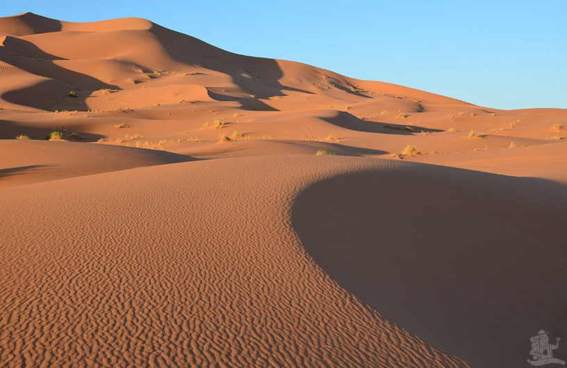 Fez és a sivatag közötti, éjszakán átnyúló kilenc órás buszozás kibírhatatlanul hosszú volt. Csipám Errachidiában (ejtsd: errasídia) pottyant ki a szememből, ahol többedmagammal áttelepedtem egy grand taxiba. Rissaniba, a sivatag előtti utolsó településre tekertünk. Ott átraktak minket egy terepjáróba, és már raliztunk is a tevékkel őrzött, sivatagi szálláshelyre.
