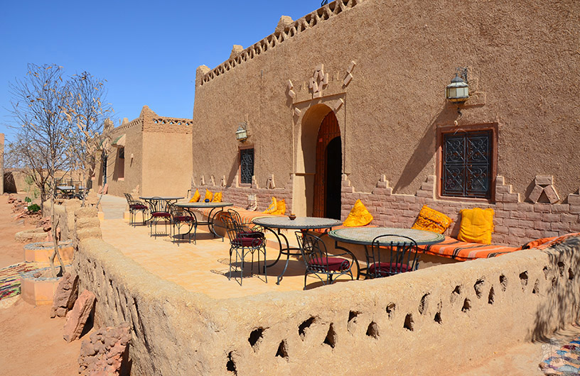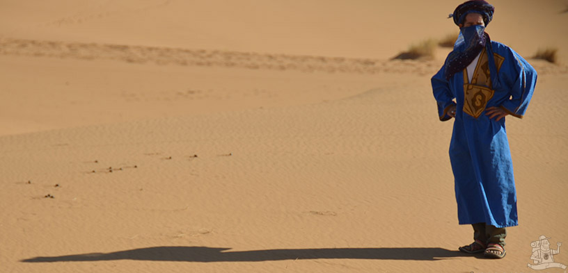 Tuareg arcok fogadtak minket a homokkőből épített, egykor várként funkcionáló hajlék előtt. A tuaregek, vagy más néven kék emberek egy észak-afrikai, mohamedán vallású nomád nép a berber népcsoporton belül, akik klánokban élnek és akiket kék ruházatukról ismerhetünk fel. A férfiak turbánt és huszonöt éves koruktól kezdve fátyolt hordanak, mely igen előnyös egy homokviharban. Szaharai országok lakói, de mindenütt kisebbségben vannak. Talán Marokkóban él a legkevesebb. Eredetileg kereskedő nép, az alkudozások mesterei, akik Afrika mélyéről szállították az árut a mediterrán térségbe. Persze csakis olyan áru jöhetett szóba, amely egyrészt nagy haszonnal kecsegtetett, másrészt kevés helyet foglalt el a karavánon. Mint például az ékszer és a bőr.